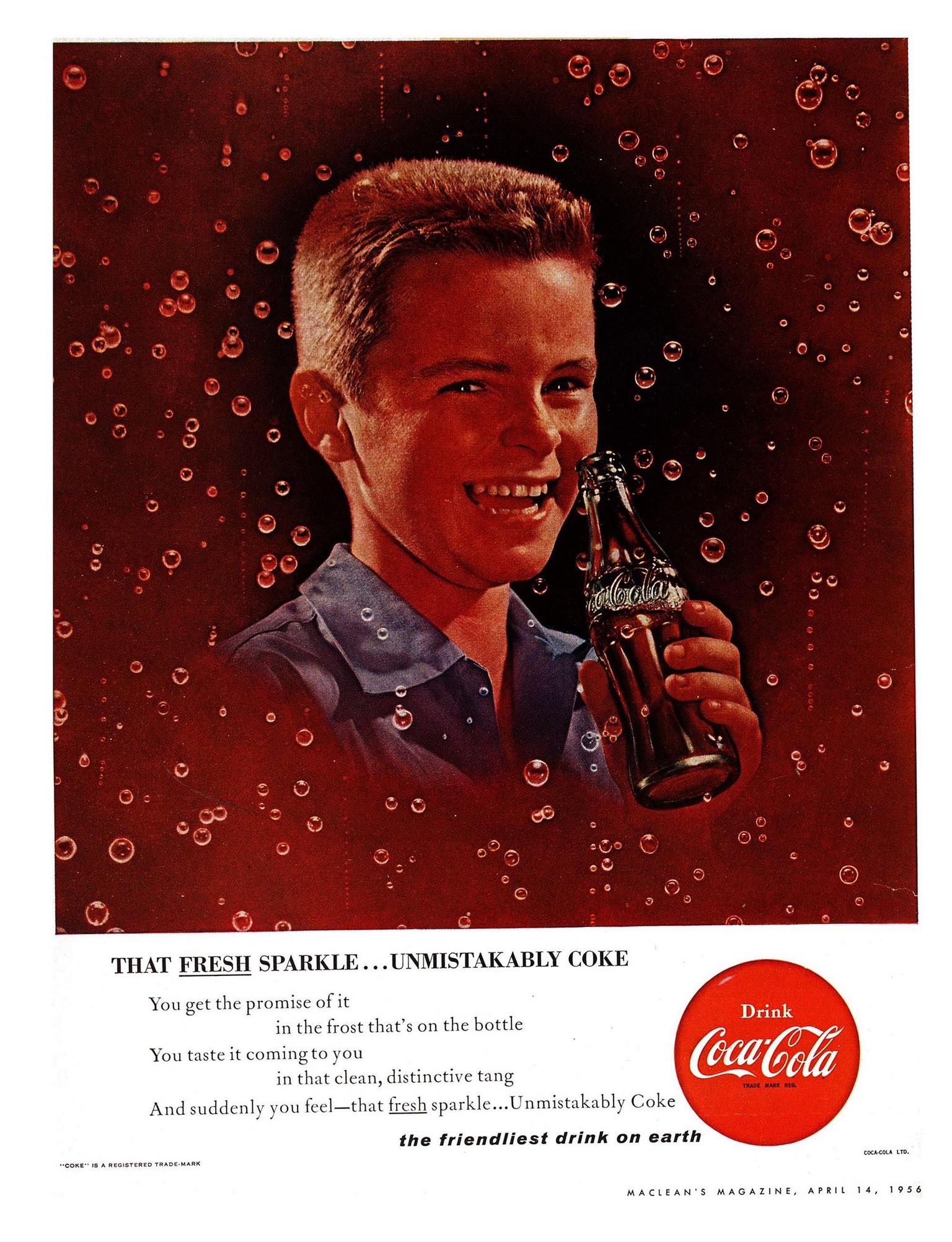 1956 That Fresh Sparkle… Unmistakably Coke. Drink Coca-Cola