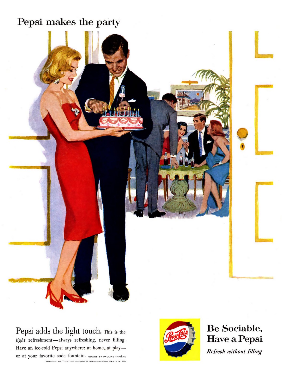 1960 Pepsi makes the party. Be Sociable, Have a Pepsi. Refresh without filling