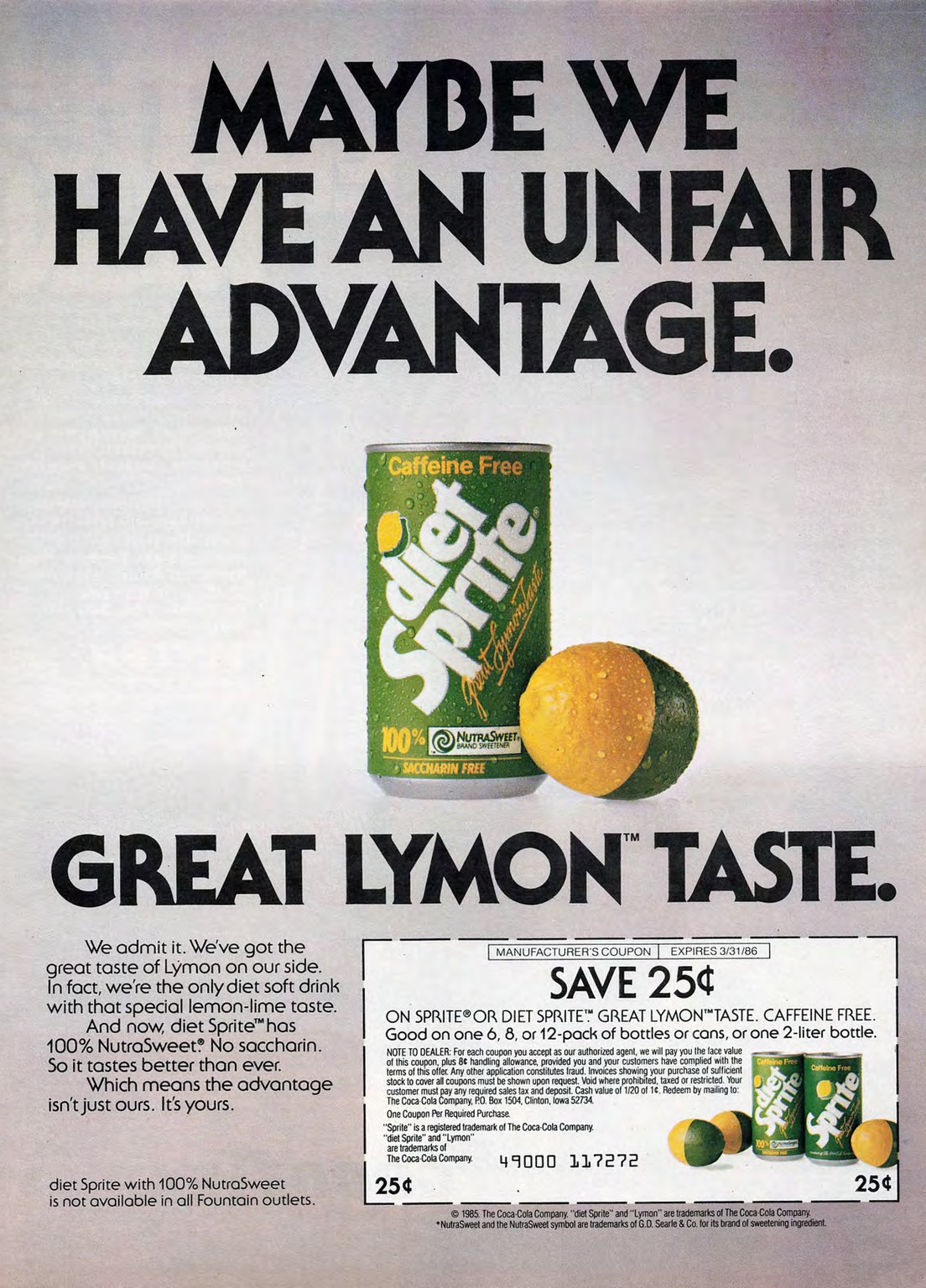 1985 Maybe We Have An Unfair Advantage. Great Lymon Taste. Sprite