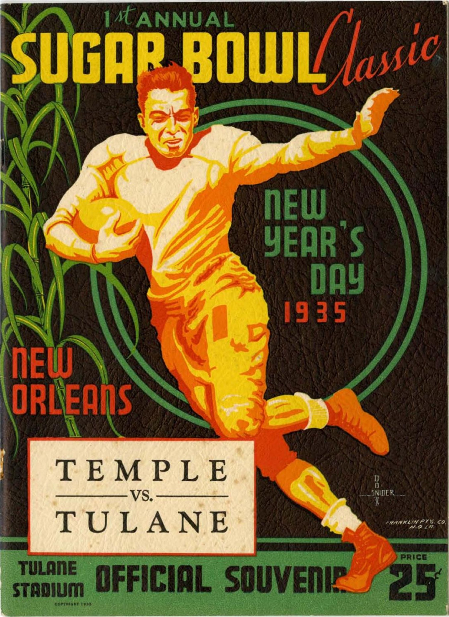 1935 Sugar Bowl Classic. New Orleans. Temple vs. Tulane