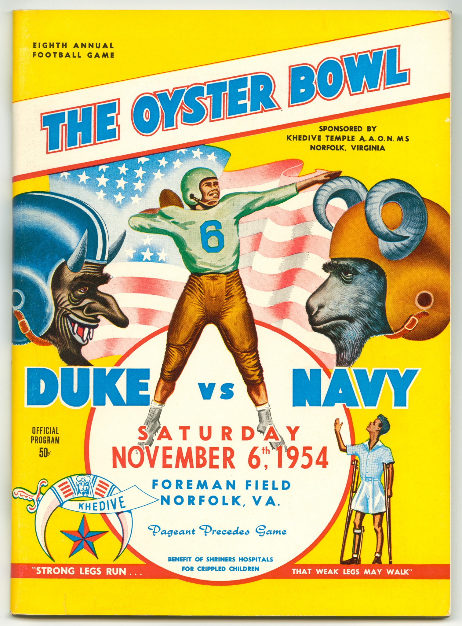 1954 The Oyster Bowl. Duke vs Navy. Foreman Field Norfolk, VA