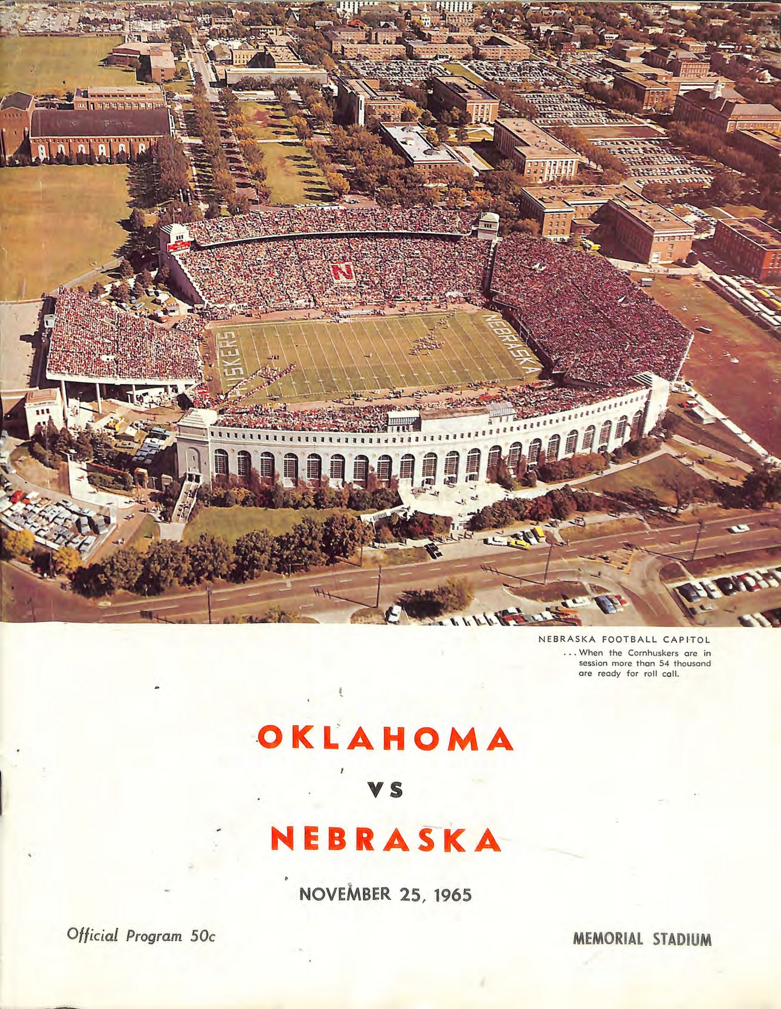 1965 Oklahoma vs Nebraska. Memorial Stadium