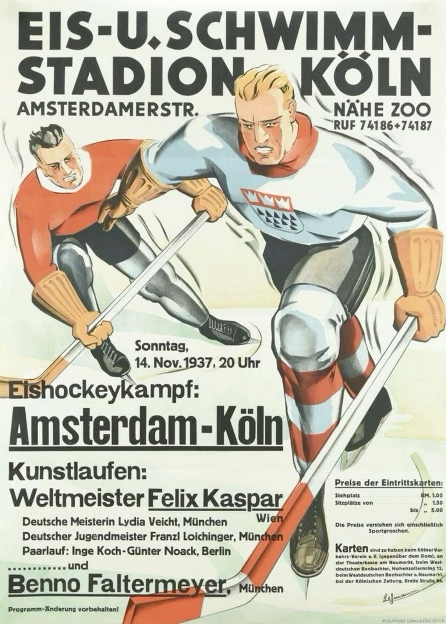 1937 Eis-U. Schwimm-Stadion Köln. Eishockeykampf. Amsterdam – Köln
