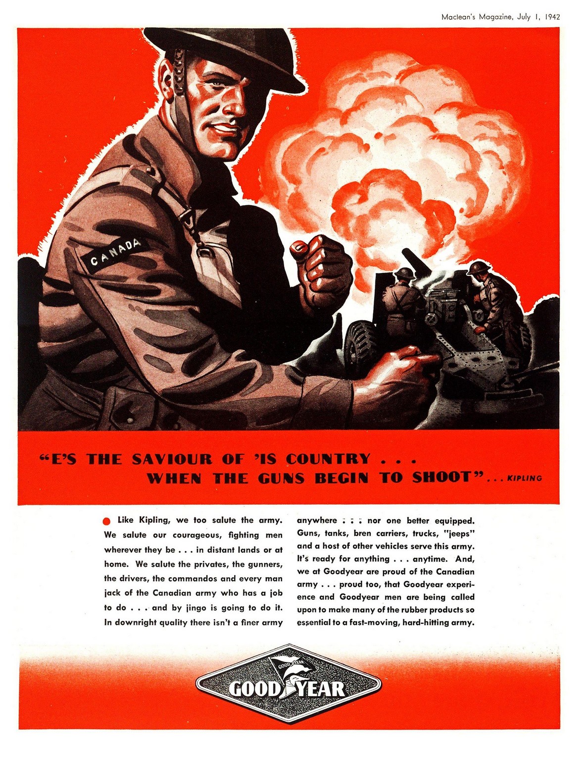 1942 ‘E’s The Saviour Of ‘Is Country… When The Guns Begin To Shoot’ … Kipling. GoodYear