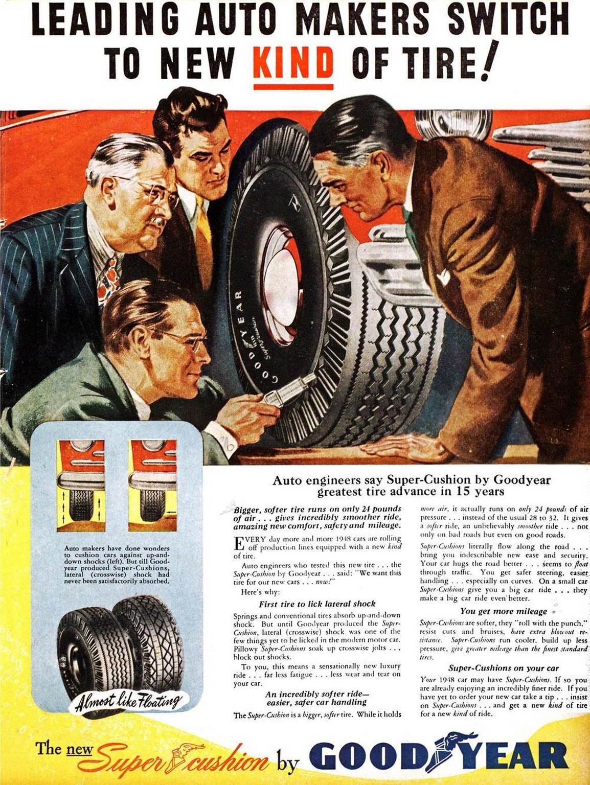 1948 Leading Auto Makers Switch To New Kind Of Tire!. GoodYear