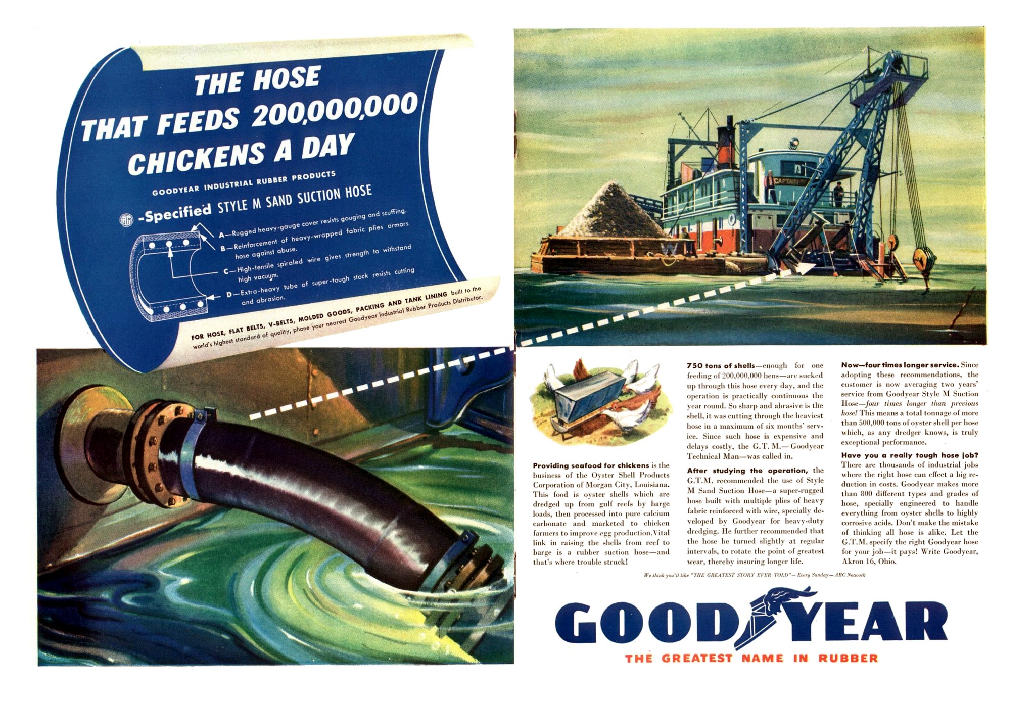 1950 The Hose That Feeds 200,000,000 Chickens A Day. GoodYear