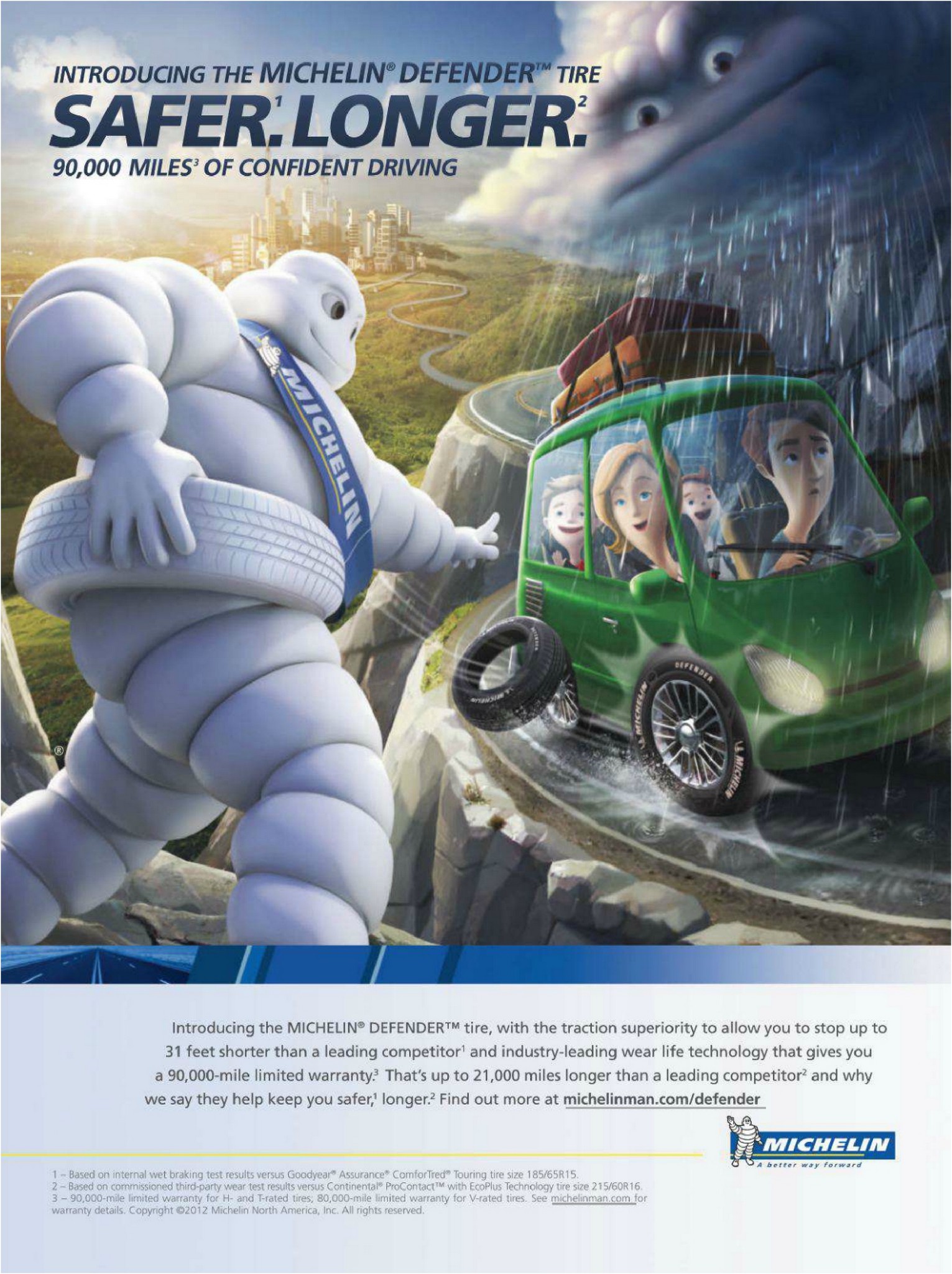 2012 Introducing The Michelin Defender Tire Safer. Longer. 90,000 Miles Of Confident Driving. Michelin