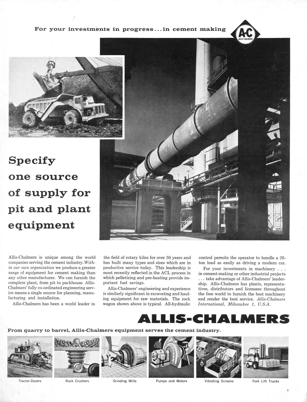 1961 Specify on source of supply for pit and plant equipment. Allis-Chalmers