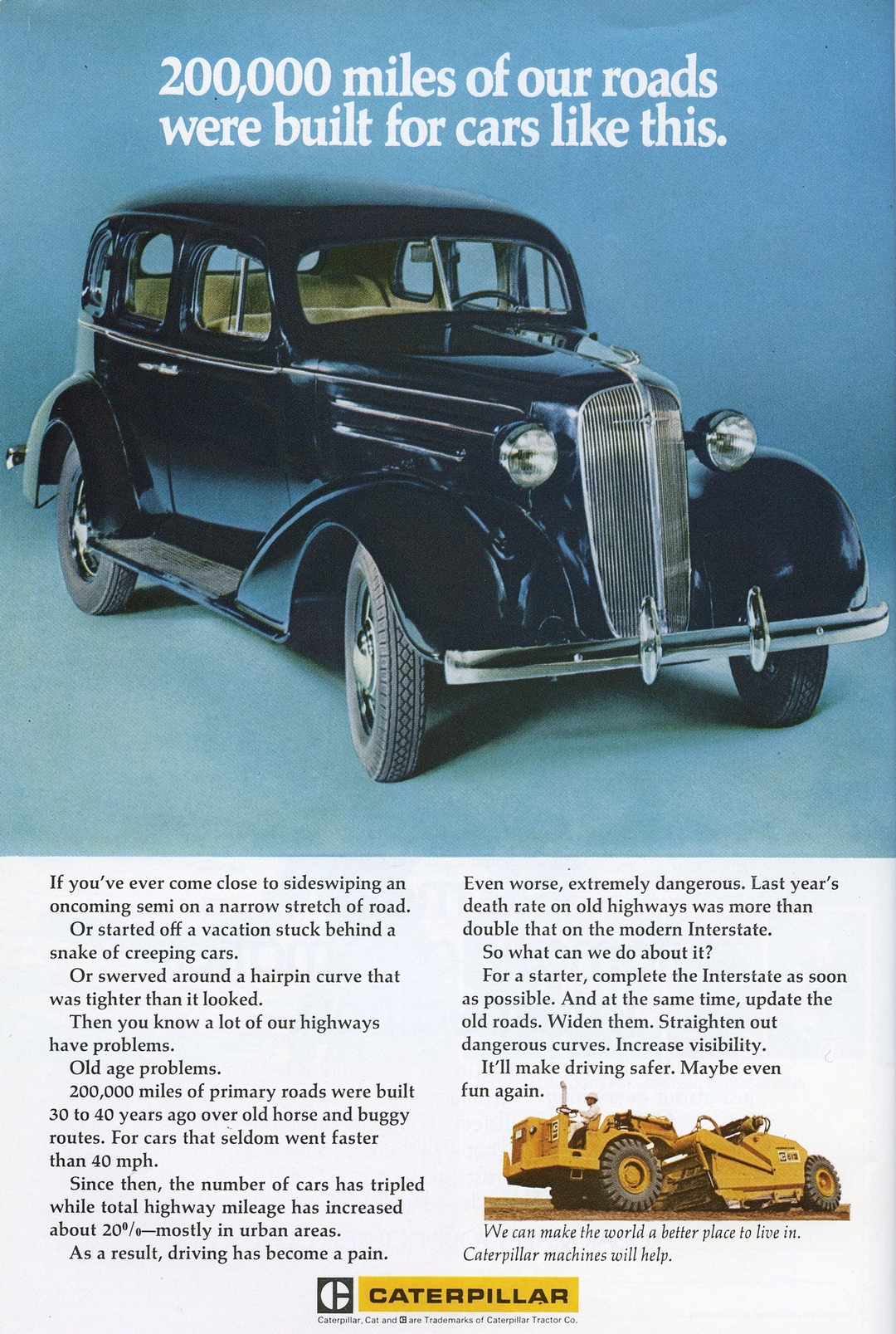 1971 Caterpillar. 200,000 miles of our roads were built for cars like this