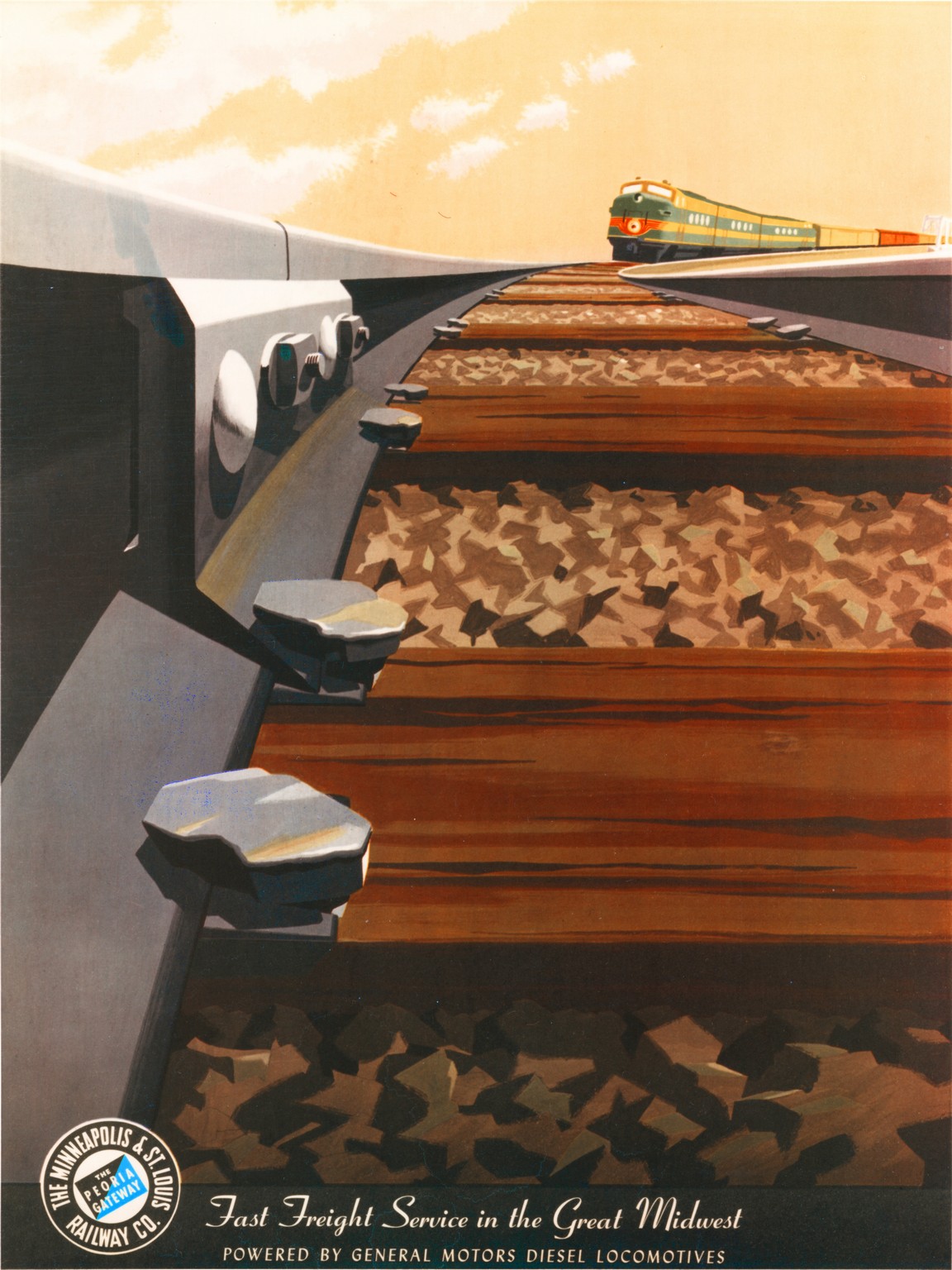 1953 The Minneapolis & St. Louis Railway. Fast Freight Service in the Great Midwest. Powered By General Motors Diesel Locomotives