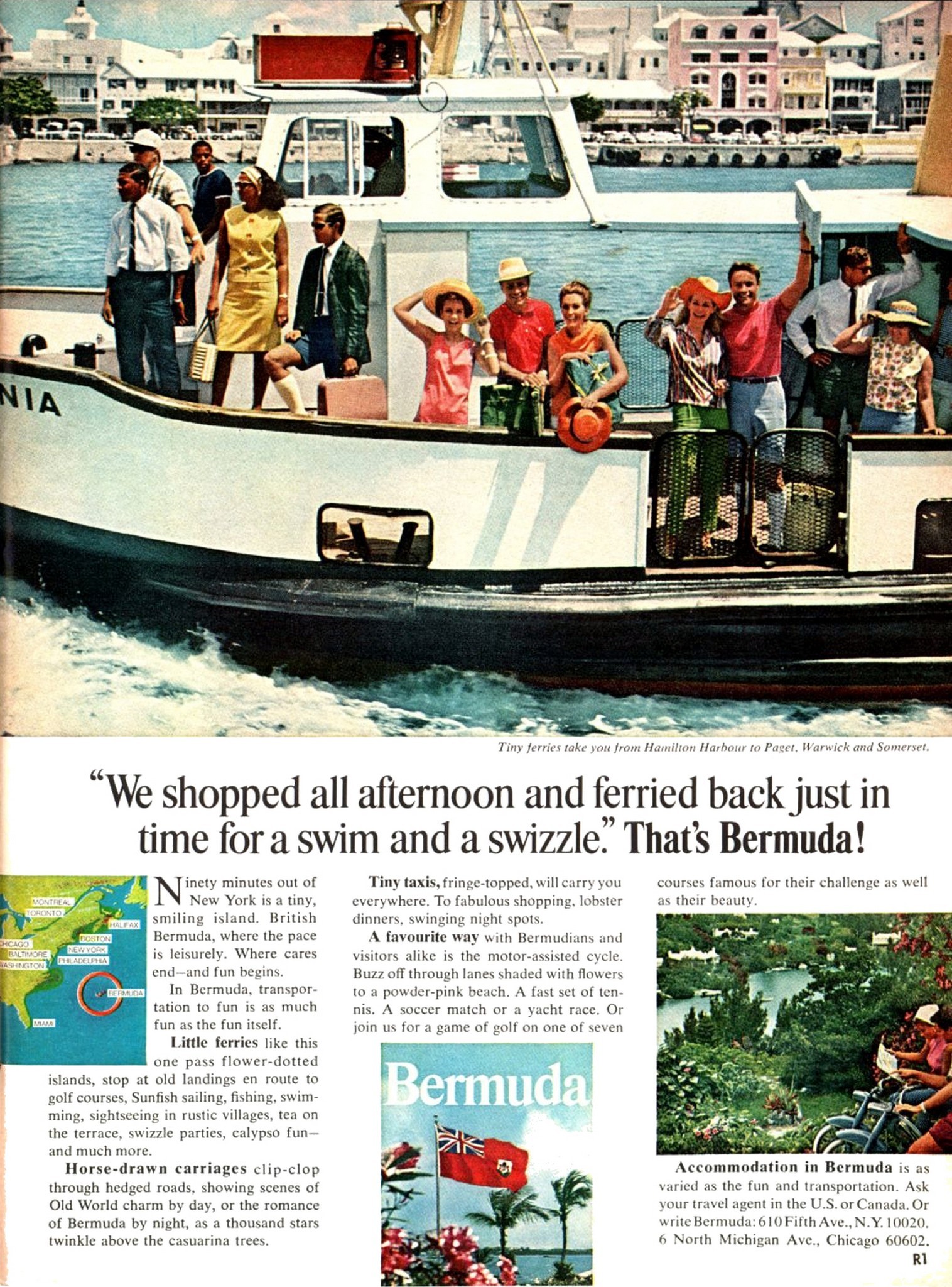 1967 ‘We shopped all afternoon and ferried back just in time for a swim and a swizzle.’ That’s Bermuda!
