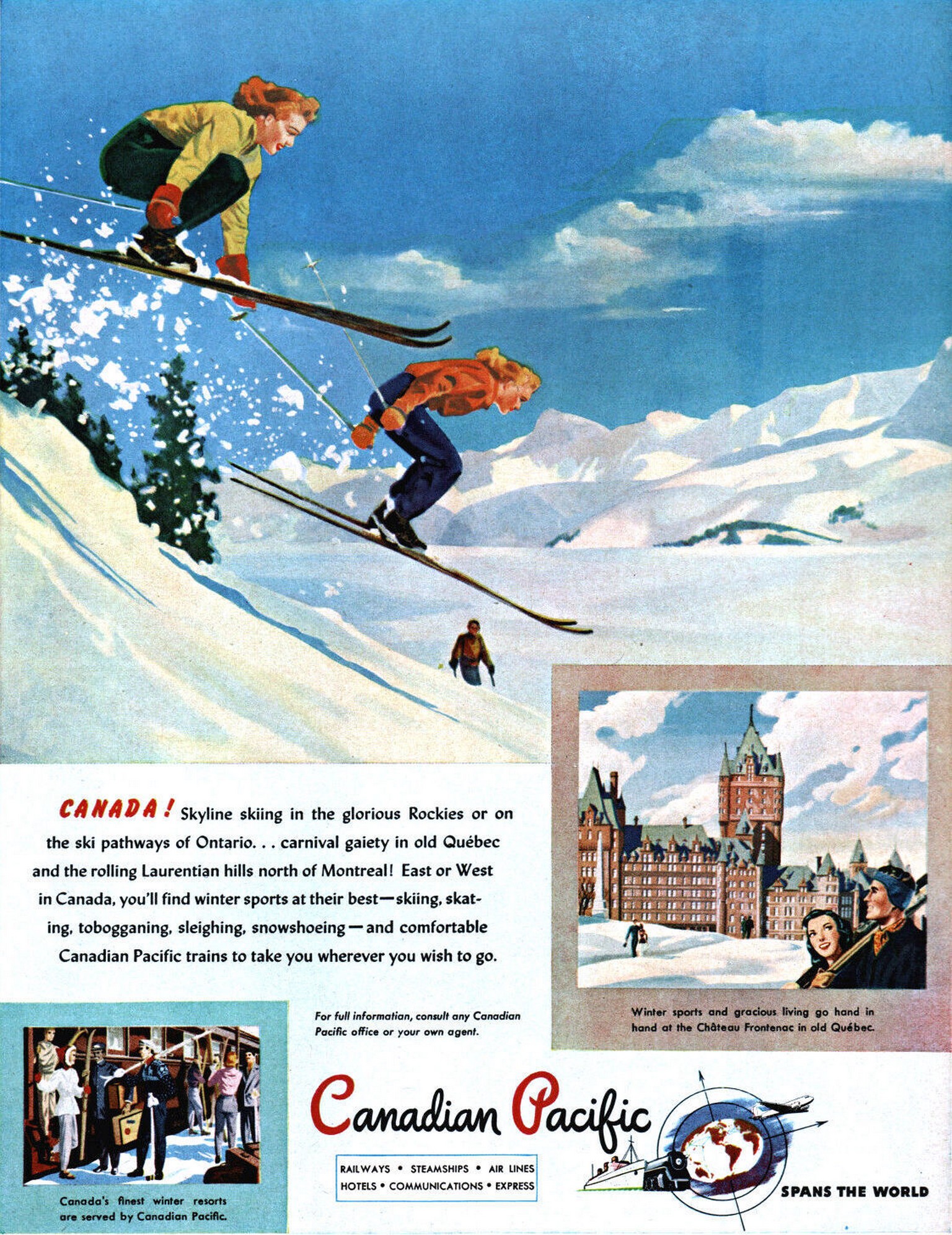 1947 Canada! Skyline skiing in the glorious Rockies or on the ski pathways of Ontario. Canadian Pacific (1)