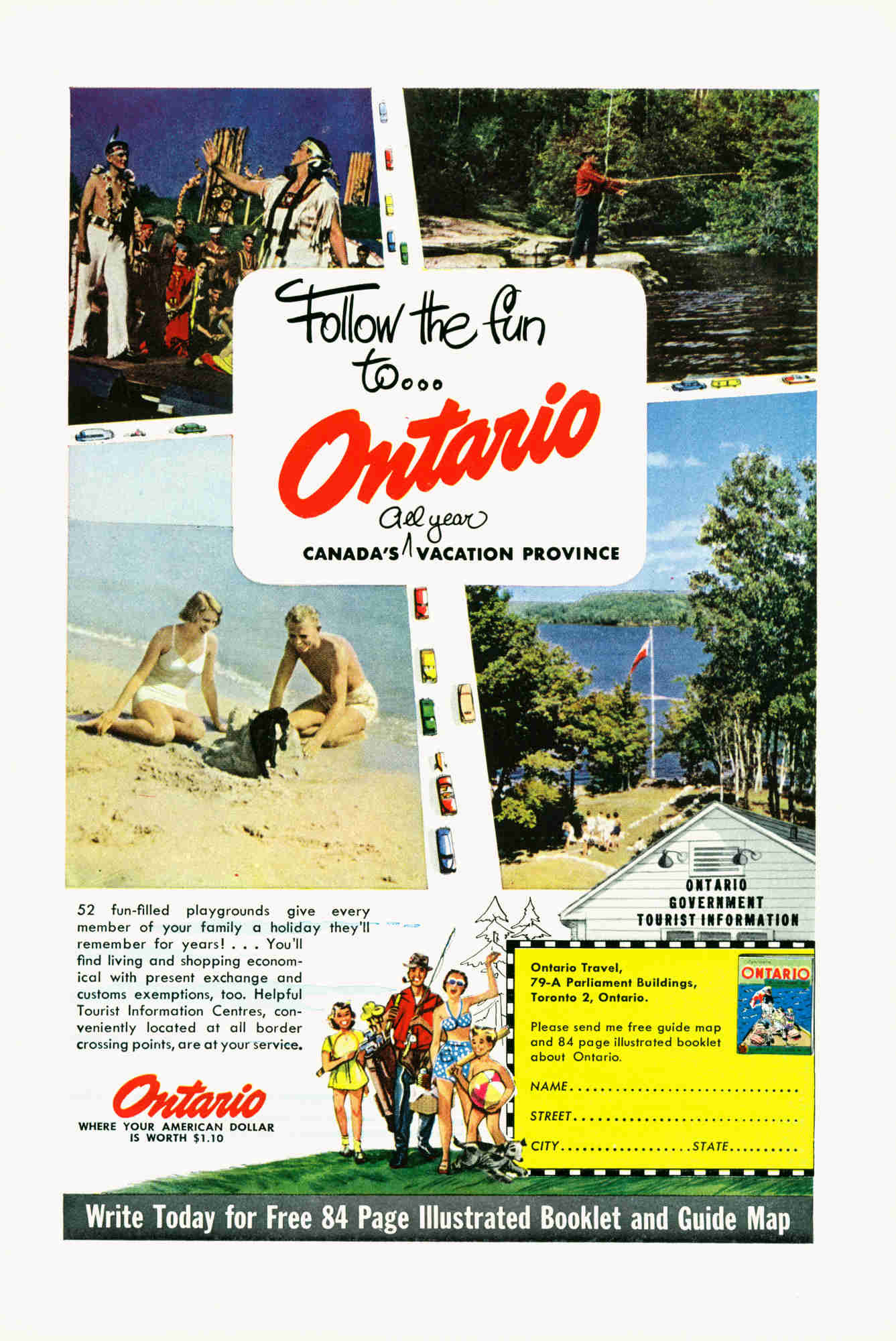 1950 Follow the fun to… Ontario. Canada’s all year Vacation Province
