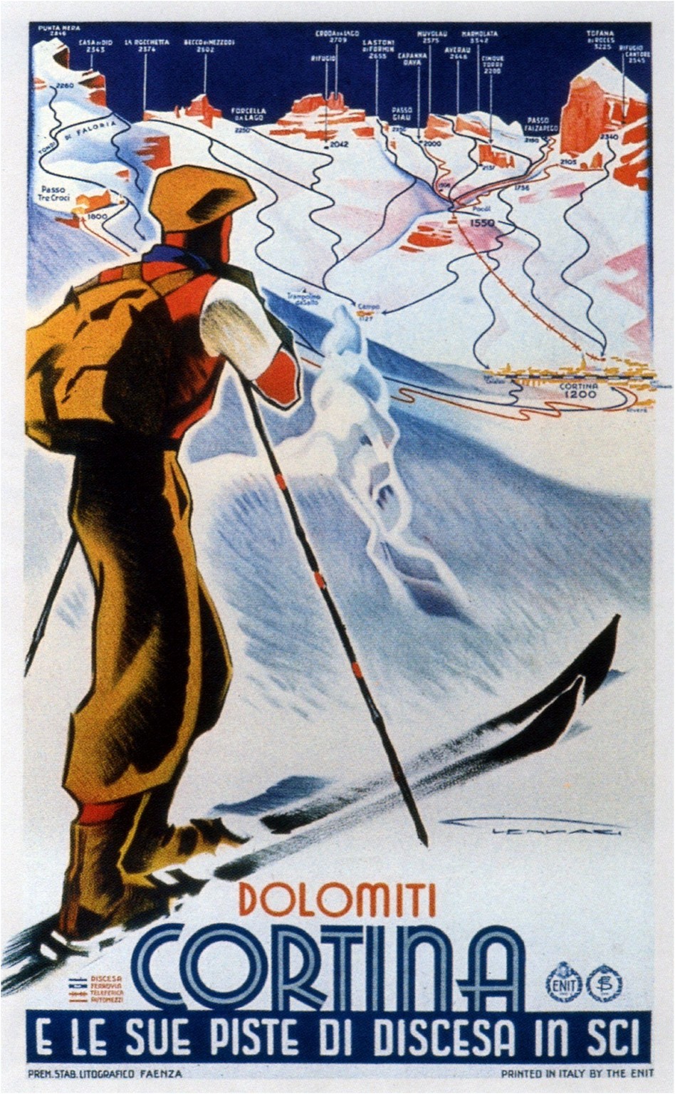 Main » Travel » Italy Travel Poster and Ad Collection » 1930 Dolomiti. Cortina. E Le Sue Piste Di Discesa In Sci
