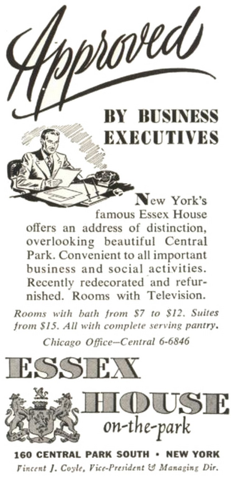 1950 Approved By Business Executives. Essex House on-the-park