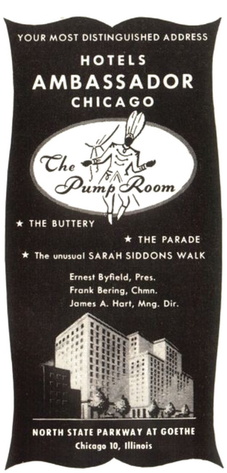 1950 Your Most Distinguished Address Hotels Ambassador Chicago. The Pump Room